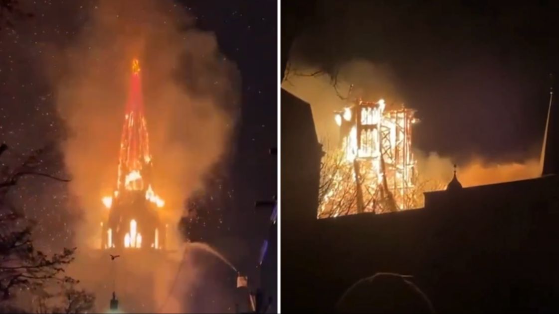 Videosnimci očevidaca prikazuju crkvu obavijenu plamenom i gustom dimu.