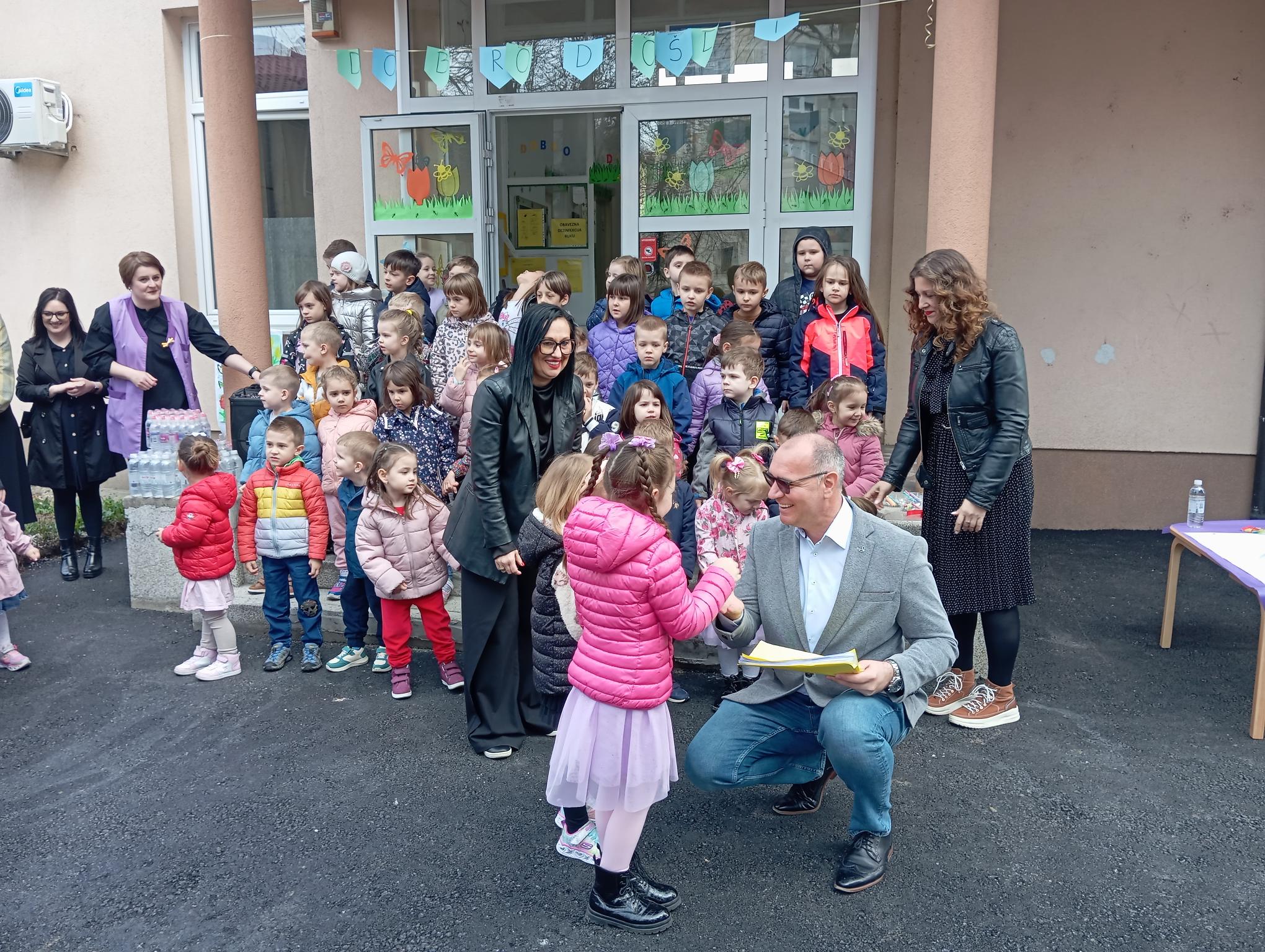 Gradonačelnik Lugavić zahvalio se mališanima te je izrazio zadovoljstvo uposlenicima obdaništa “Naše dijete” i odjeljenja “Bambi” jer su inicirali zahtjev za asfaltiranjem prilaznog puta kako bi se olakšao pristup mališanima, njihovim roditeljima i uposlenicima, te je kazao: “Veoma nam je drago da možemo i ovako društvenoj zajednici odgovoriti na njihove zahtjeve. Srce mi je veliko, posebno kada vidimo koliko ima naših mališana ovdje koji su spremni da danas izvedu predstavu, što nas raduje i što na taj način pokazuju koliko im je zapravo drago što smo uspjeli da asfaltiramo ovaj prilazni put.”