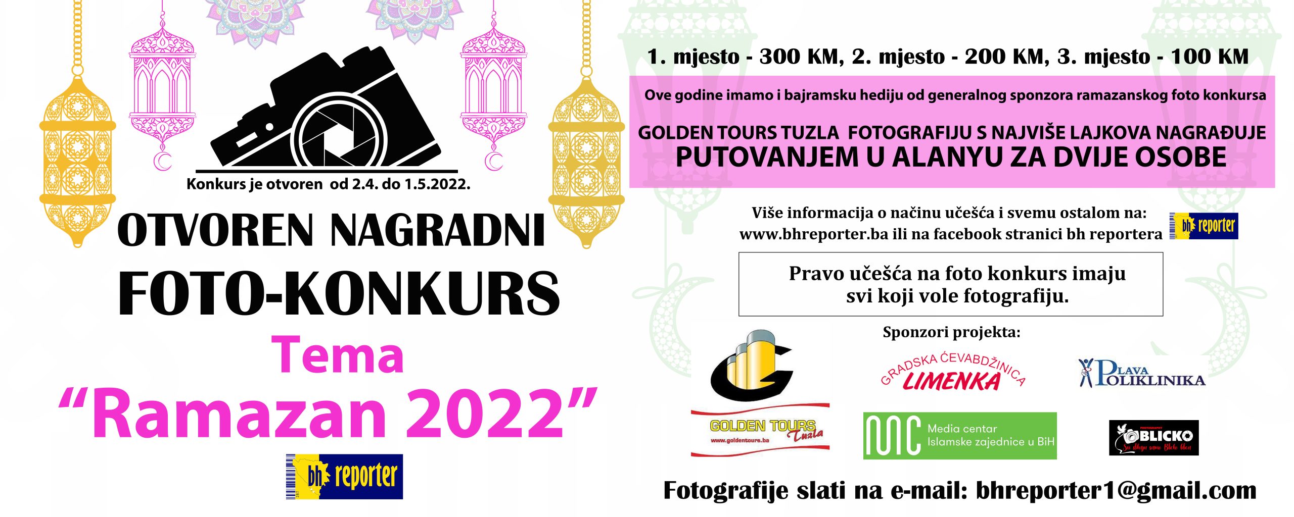 Generalni sponzor projekta je turistička agencija Golden tours i poklanja putovanje u Alanyu za dvije osobe učesniku ramazanskog foto konkursa čija fotografija bude osvojila najviše lajkova, uz obavezan lajk stranice bh reporter i Golden Tours agencije.