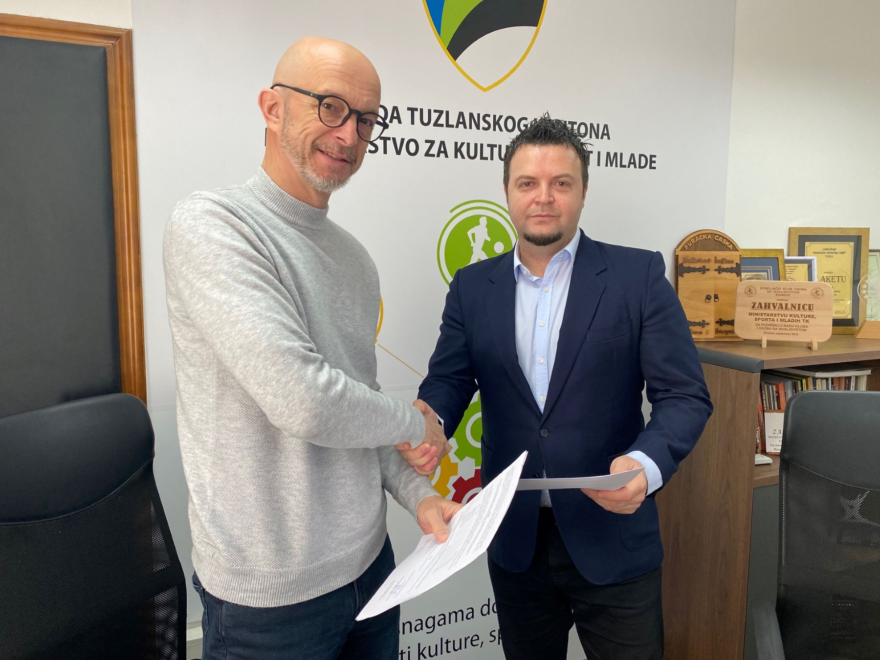 Ministar za kulturu, sport i mlade Tuzlanskog kantona Damir Gazdić potpisao je danas sa predsjednikom Sindikata srednjeg i visokog obrazovanja, odgoja, nauke i kulture Bosne i Hercegovine – Kantonalni odbor TK Admirom Terzićem Aneks Sporazuma o utvrđivanju platnih razreda i koeficijenata za obračun plaće zaposlenika u ustanovama kulture Tuzlanskog kantona koji plaće i naknade primaju iz Budžeta Tuzlanskog kantona.